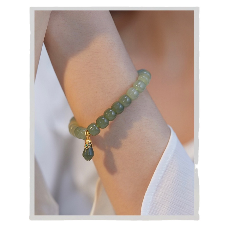 Lily of the Valley Natural Gradient Emerald Jade stone Bracelet